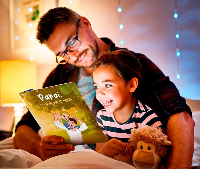 Cada vez mais as pessoas procuram livros personalizados para oferecer ao papai, pois são propostas originais e exclusivas. Um presente perfeito para surpreender no Dia dos Pais, felicitá-lo pelo seu aniversário ou para os filhos dizerem ao papai o quanto o amam, a qualquer momento e por qualquer motivo.Porque o amor pelo pai é algo que se demonstra todos os dias. Esta história personalizada para o pai, reflete a relação com os seus pequenos e irá tornar-se numa magnífica recordação dos momentos viidos na fase da infancia. E isso não tem preço!
