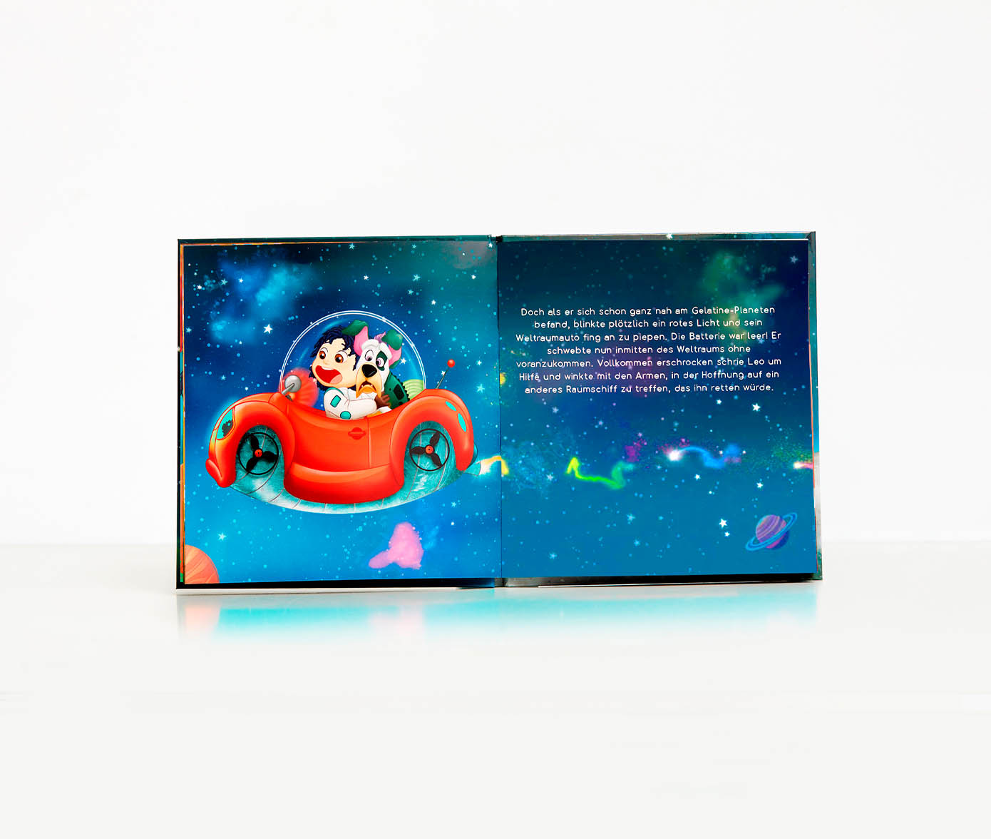 In dieser pädagogisch wertvollen und personalisierten Geschichte wird Ihr Kind den Planeten retten. Gelatineartige Außerirdische stehlen den Magneten, der der Erde die Schwerkraft verleiht. Daraufhin wird die kindliche Hauptfigur in Begleitung seines treuen „Hundkrodil” zum Planeten Gelatine reisen, um zu versuchen, den Magneten zur Erde zurückzuholen. Aber das wird nicht einfach! Wird es Ihrem Kind gelingen, einen interplanetaren Konflikt zu vermeiden?