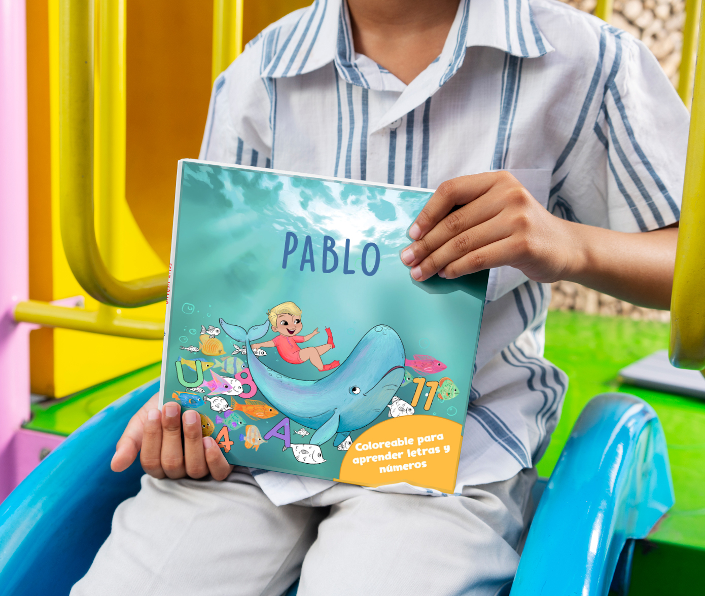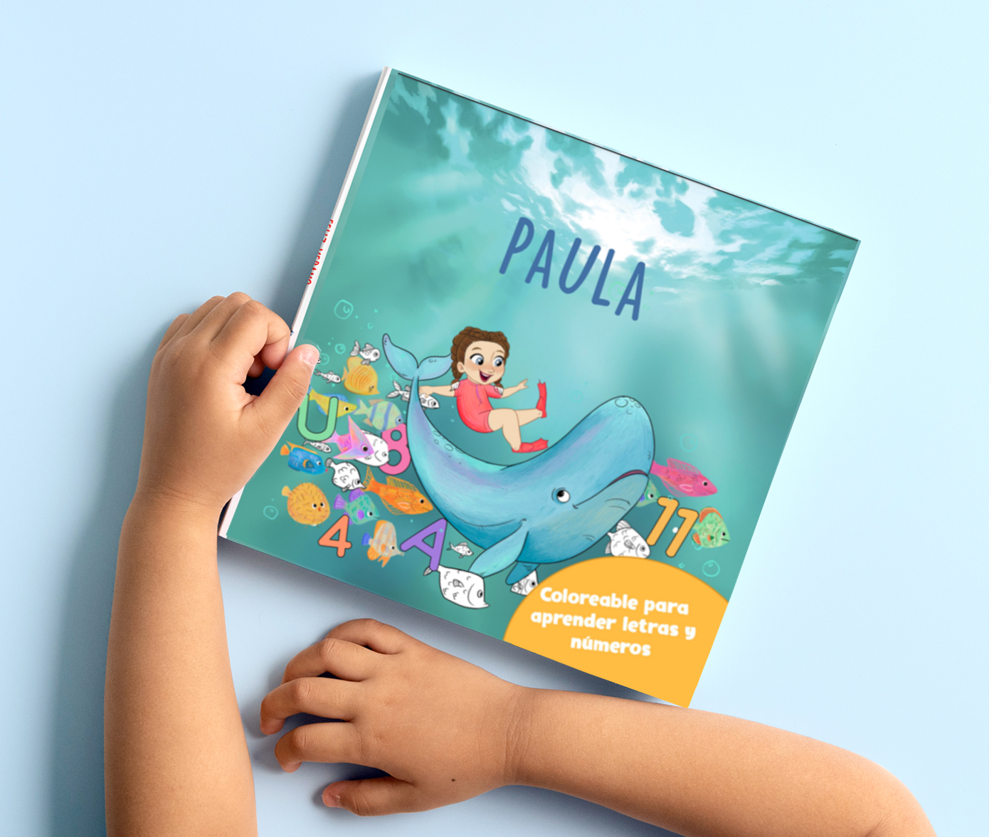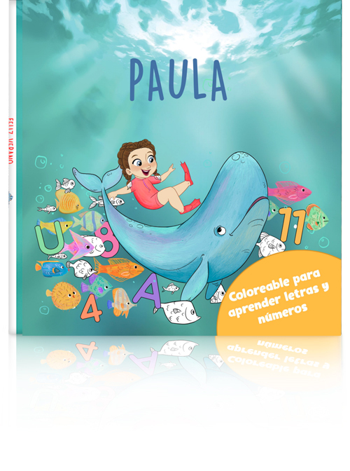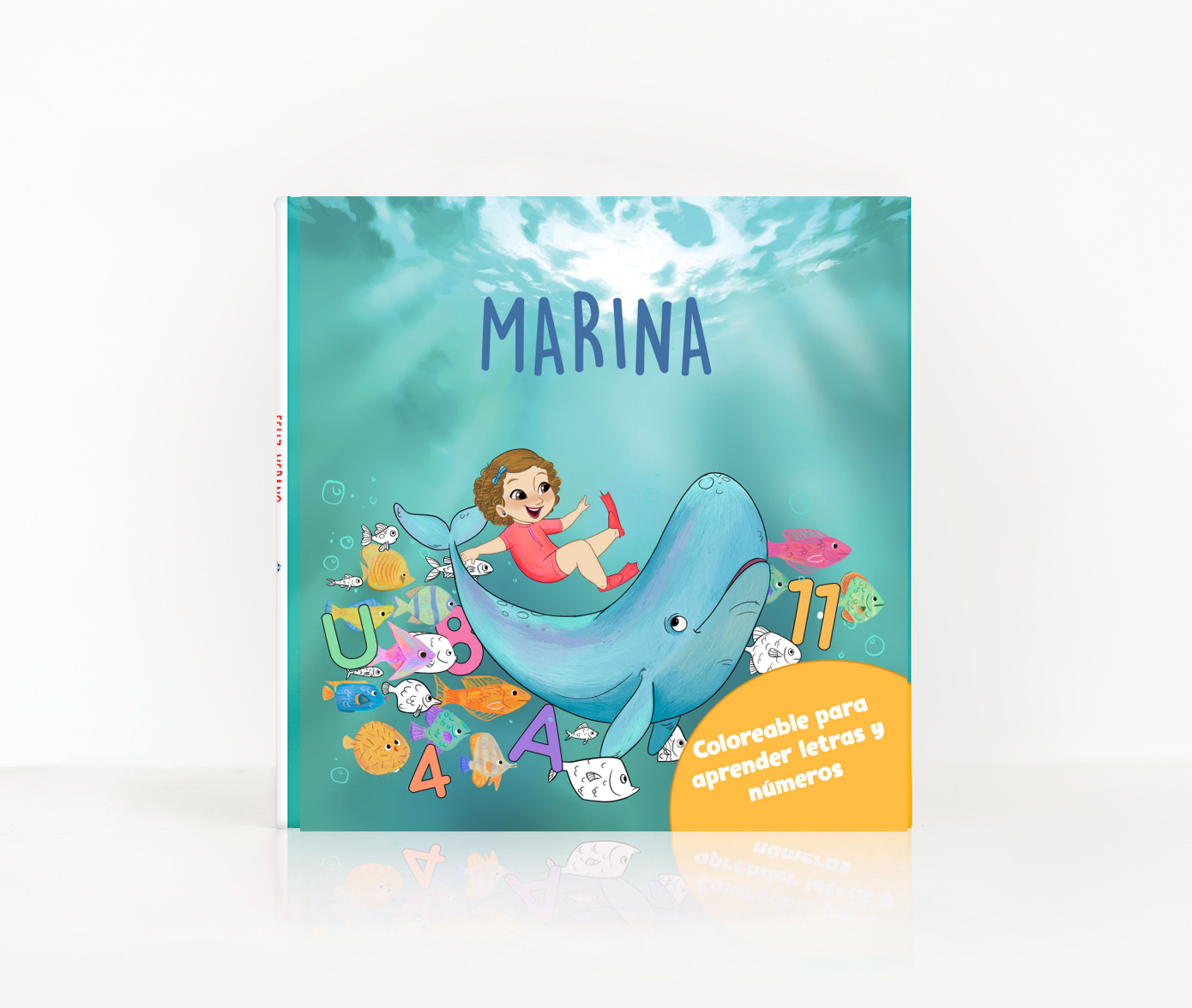Se trata de un coloreable personalizado lleno de estrellas de mar, caracolas y bonitos paisajes, ilustraciones en las que tu peque se descubirá a sí mismo. Como extra, este libro para colorear personalizado ofrece la posibilidad a los más pequeños de aprender las letras y aprender los números asociados a una cantidad concreta de elementos en cada página. El niño protagonista podrá colorearse a sí mismo de diferentes formas en cada una de las páginas y también tendrá la oportunidad de colorear al mismísimo Mumablue.