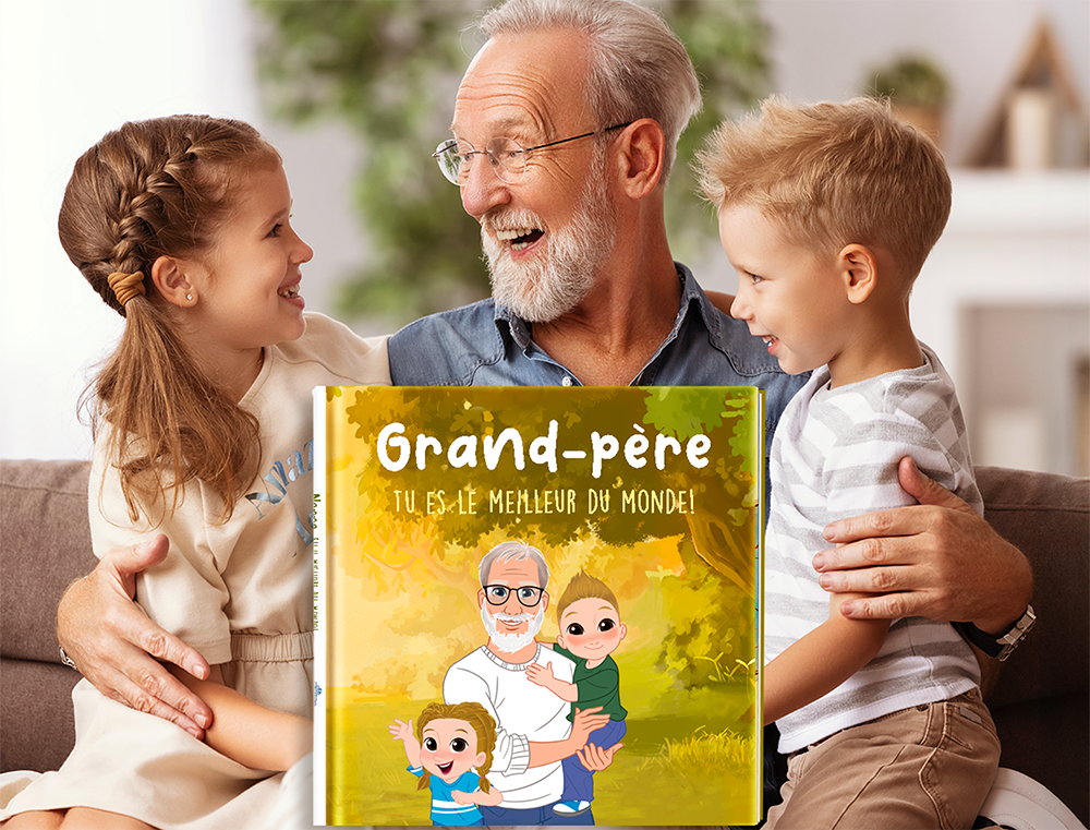 Grand-père, tu es le meilleur du monde ! Ce livre personnalisé pour grand-père rend hommage à sa relation unique avec ses petits-enfants. Personnalisez les prénoms, la dédicace et des scènes comme les jeux, les balades ou les soirées partagées. Parfait pour son anniversaire, Noël ou la Fête des grands-parents, ce conte illustré fera de lui le héros d'une histoire qu'ils liront fièrement, encore et encore. Un cadeau émouvant qu’il gardera précieusement.