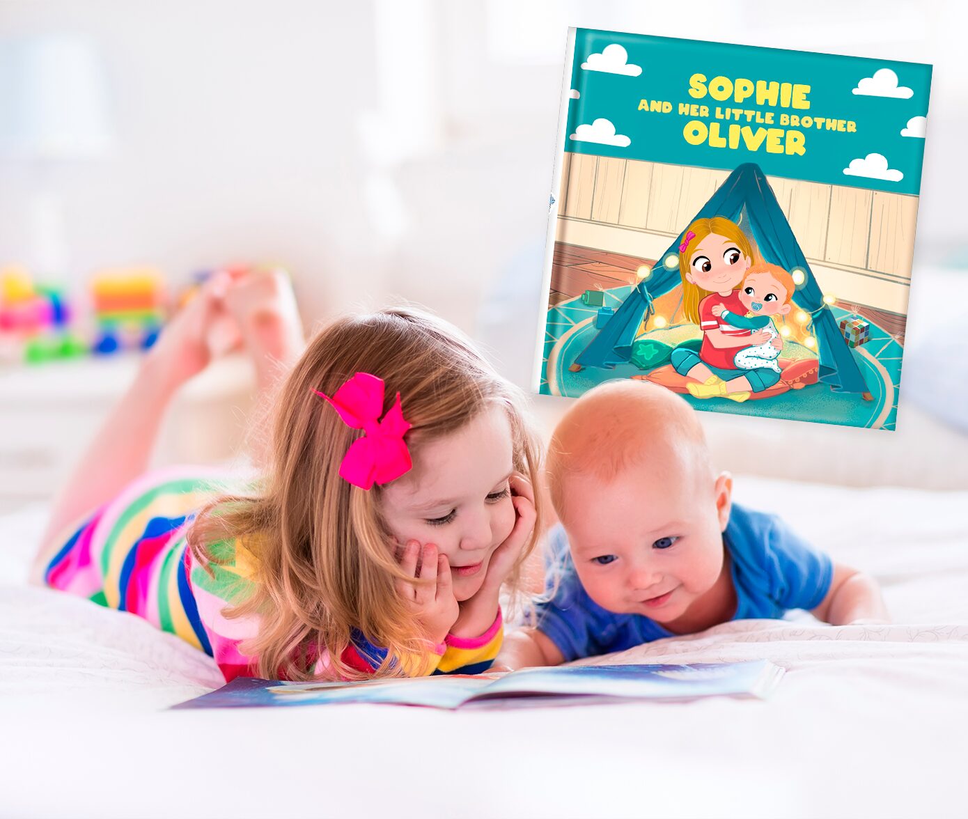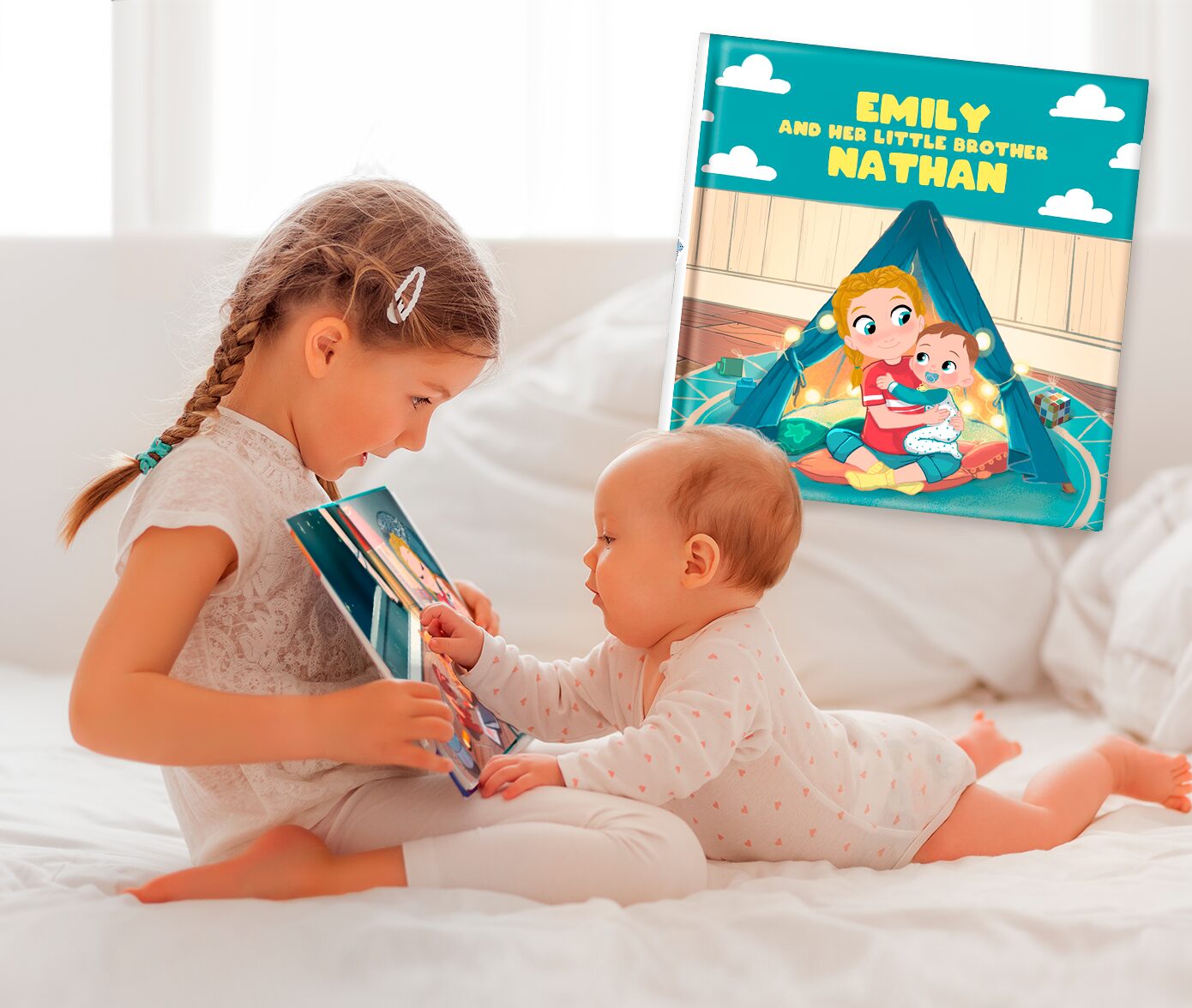 The arrival of the new baby has turned your child's world upside down: having a little brother or sister was not how they expected it to be. They want to send the baby back! This book about the arrival of a sibling will help your little "dethroned" prince or princess get used to their new reality. A personalised book, starring two siblings, that shows the true value of having a little brother through empathy, sensitivity and humor.