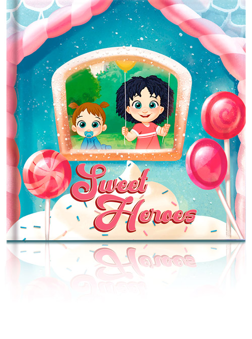 "Sweet Heroes" is a personalised story for siblings, cousins or friends in which it is possible to personalise two children of different ages (baby, toddler or infant). This allows the children to identify with their avatars, since, apart from their physical characteristics, the comparison with the other person is very important in a personalised story for two children.