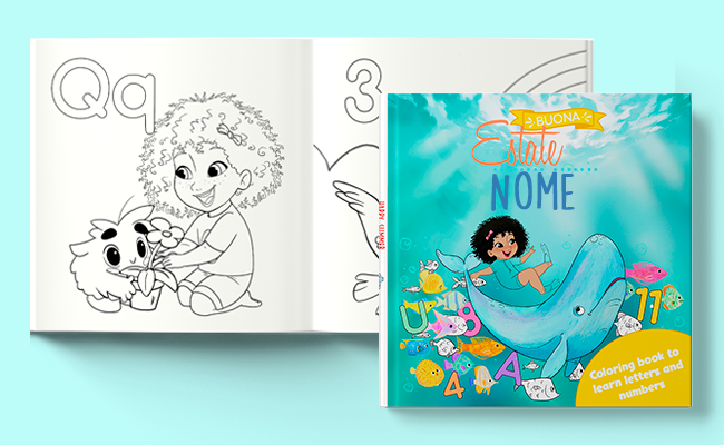 Libro da colorare personalizzato per colorare il proprio avatar e imparare numero e lettere con 21 schede.