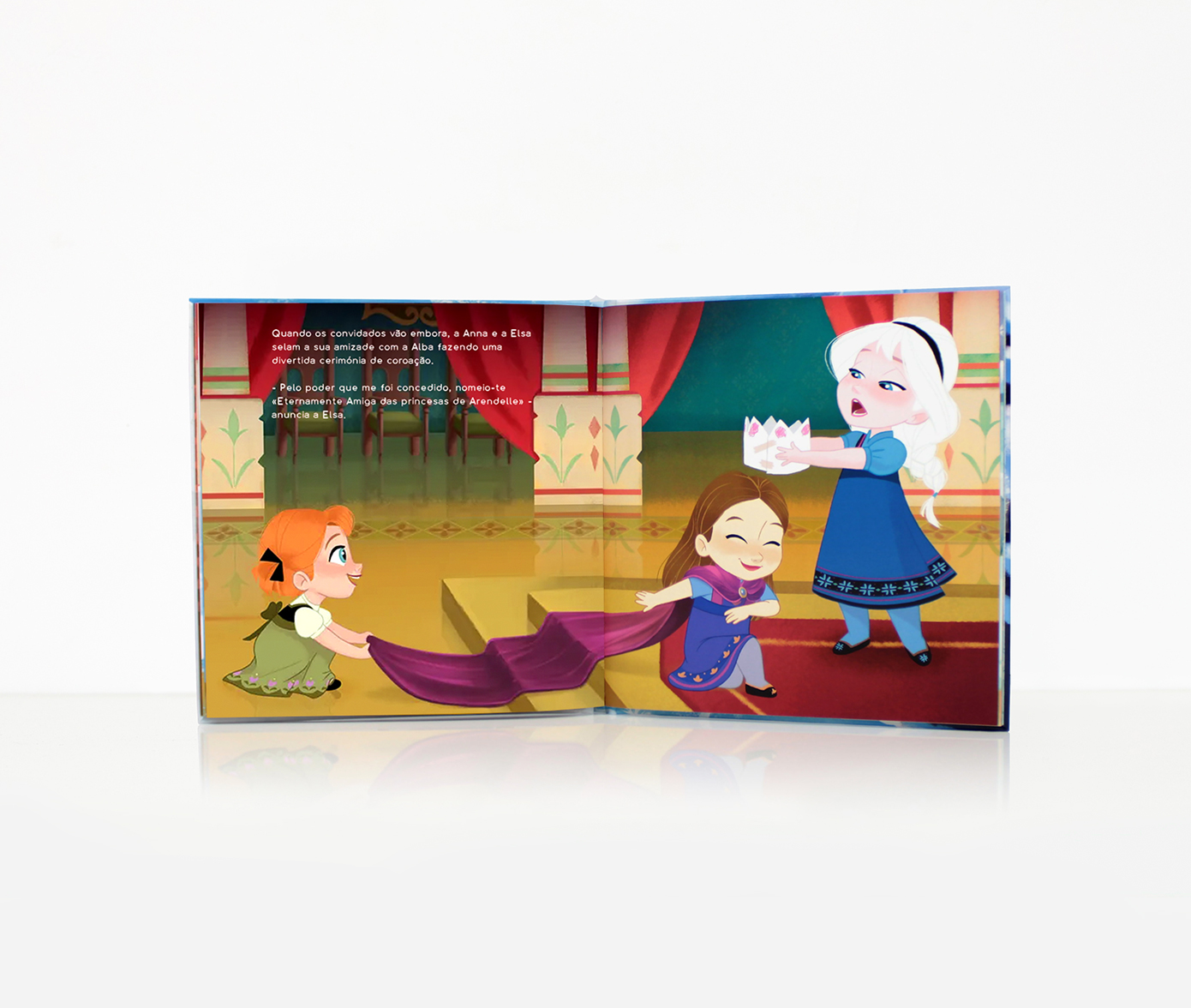 O conto Frozen personalizado da Mumablue passa-se no mundo mágico de Arendelle e não falta nenhum dos elementos-chave da história original: a ação decorre no palácio de Arendelle, descobrem-se os poderes mágicos da Anna e, claro, a neve, um elemento que todas as crianças associam a momentos de diversão.