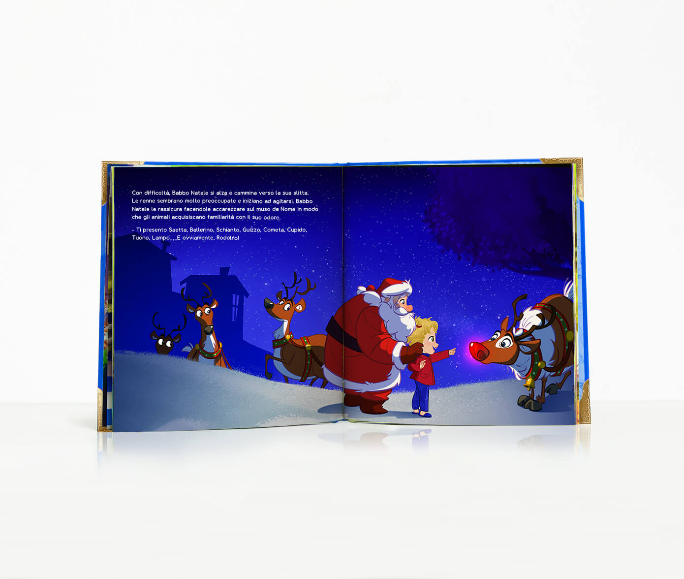 “NOME salva o Natal” é uma história de Natal personalizada em que o menino ou menina protagonista deve tomar conta da situação (e do trenó) e encarregar-se de entregar os presentes. Graças à tecnologia mágica, a sua missão será um sucesso. Mas a sua compreensão do verdadeiro espírito natalício virá quando visitar a casa de uma família muito pobre. A criança entenderá que existem muitas pessoas no mundo que não têm a mesma sorte que ela e tomará uma decisão solidária e generosa: deixará para eles os seus próprios presentes.